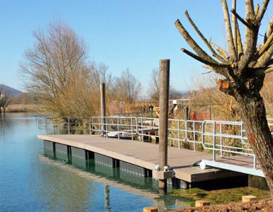 Piattaforma e pontili con galleggianti in cemento (Darsena Sacca della Misericordia)